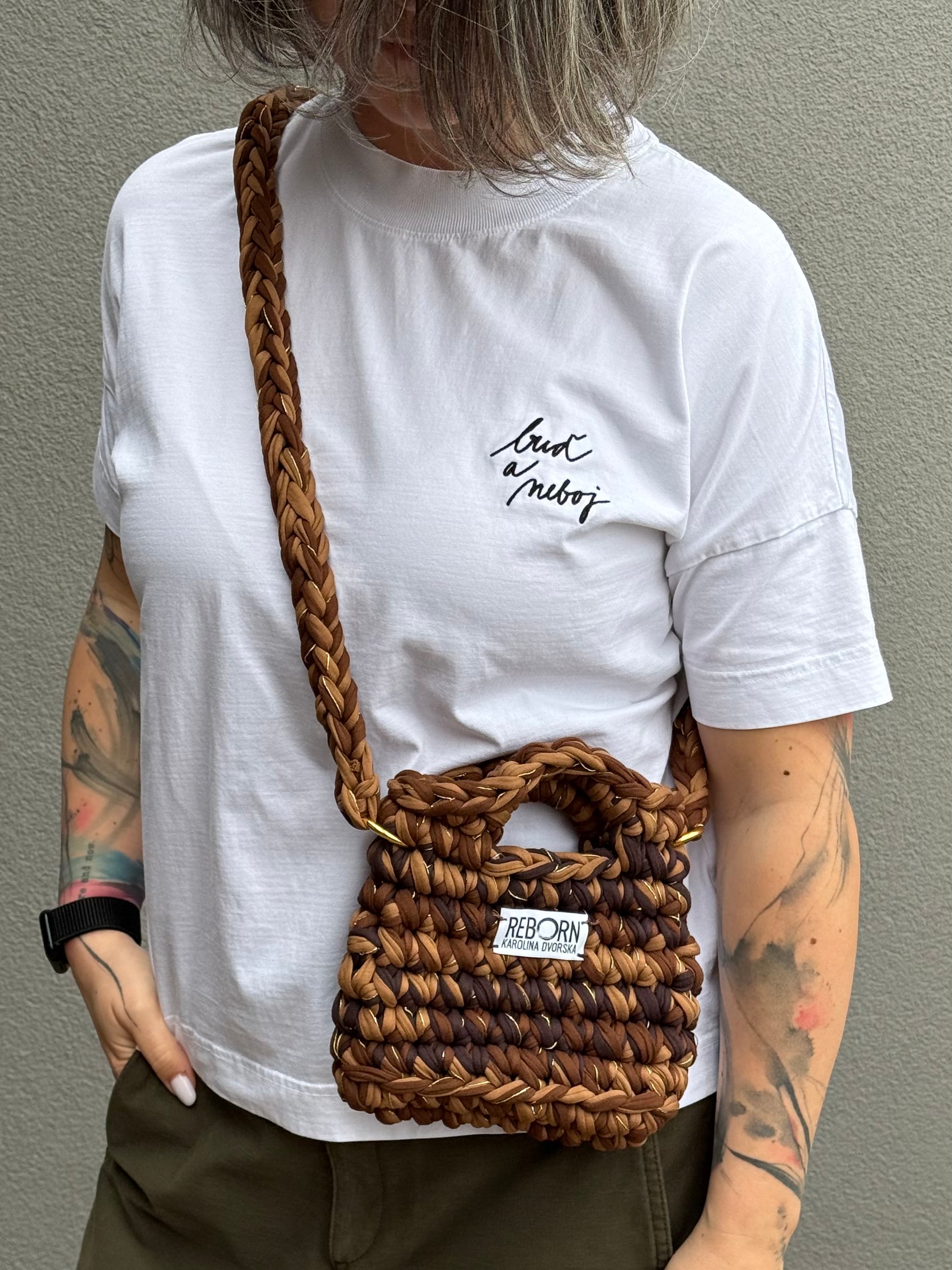 Malá crossbody kabelka. Popruh je lehce pružný a odnímatelný.