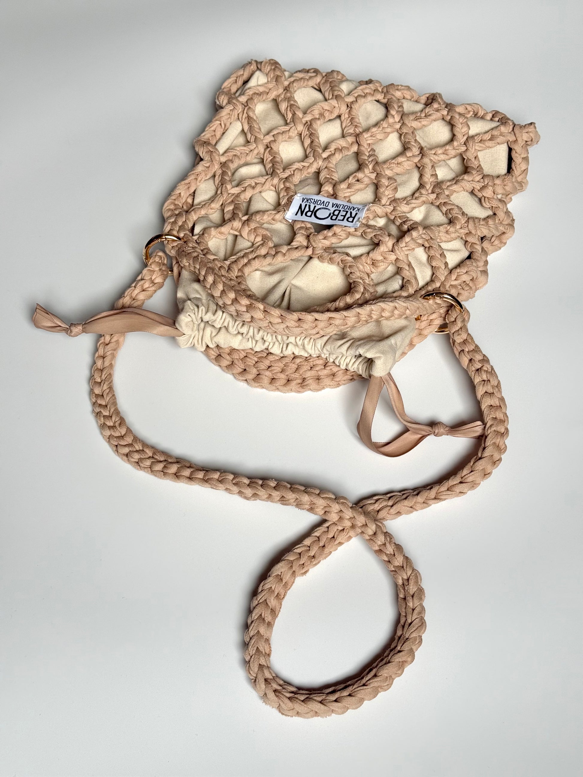 Materiál: Síťovka je z recyklované bavlny (tričkoviny) a sáček z deadstock/second-hand látky.