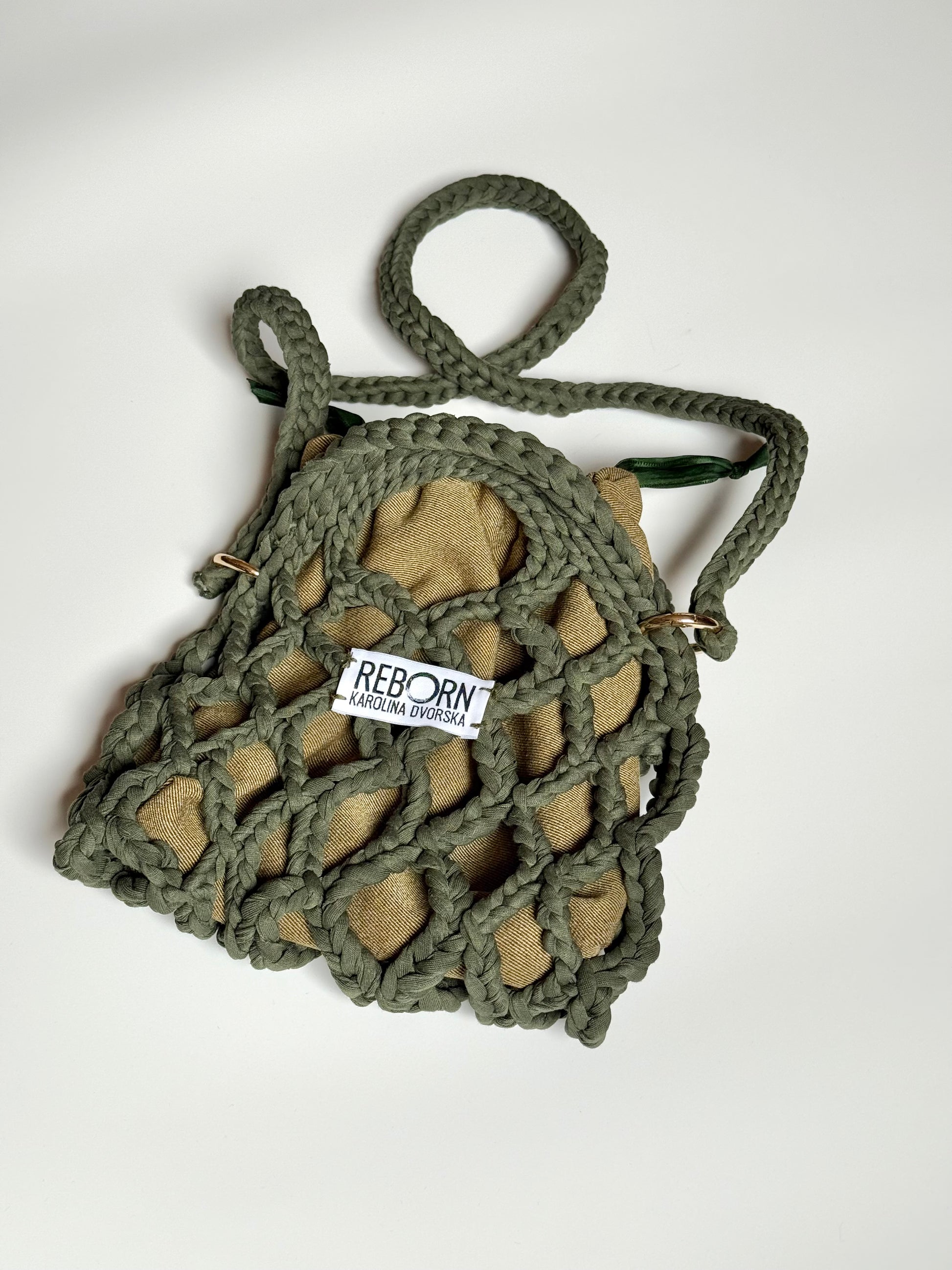 Materiál: Síťovka je z recyklované bavlny (tričkoviny) a sáček z deadstock/second-hand látky.