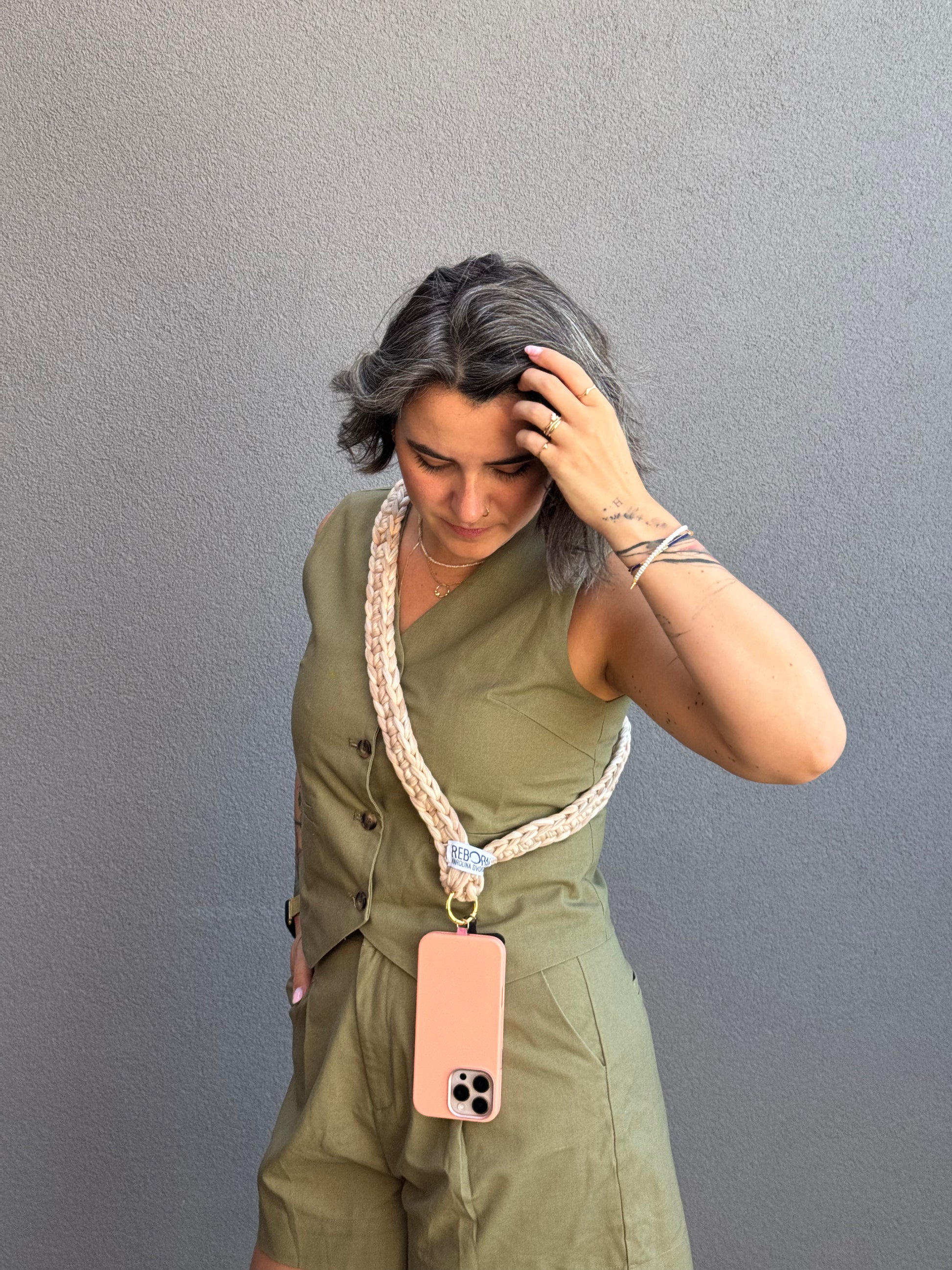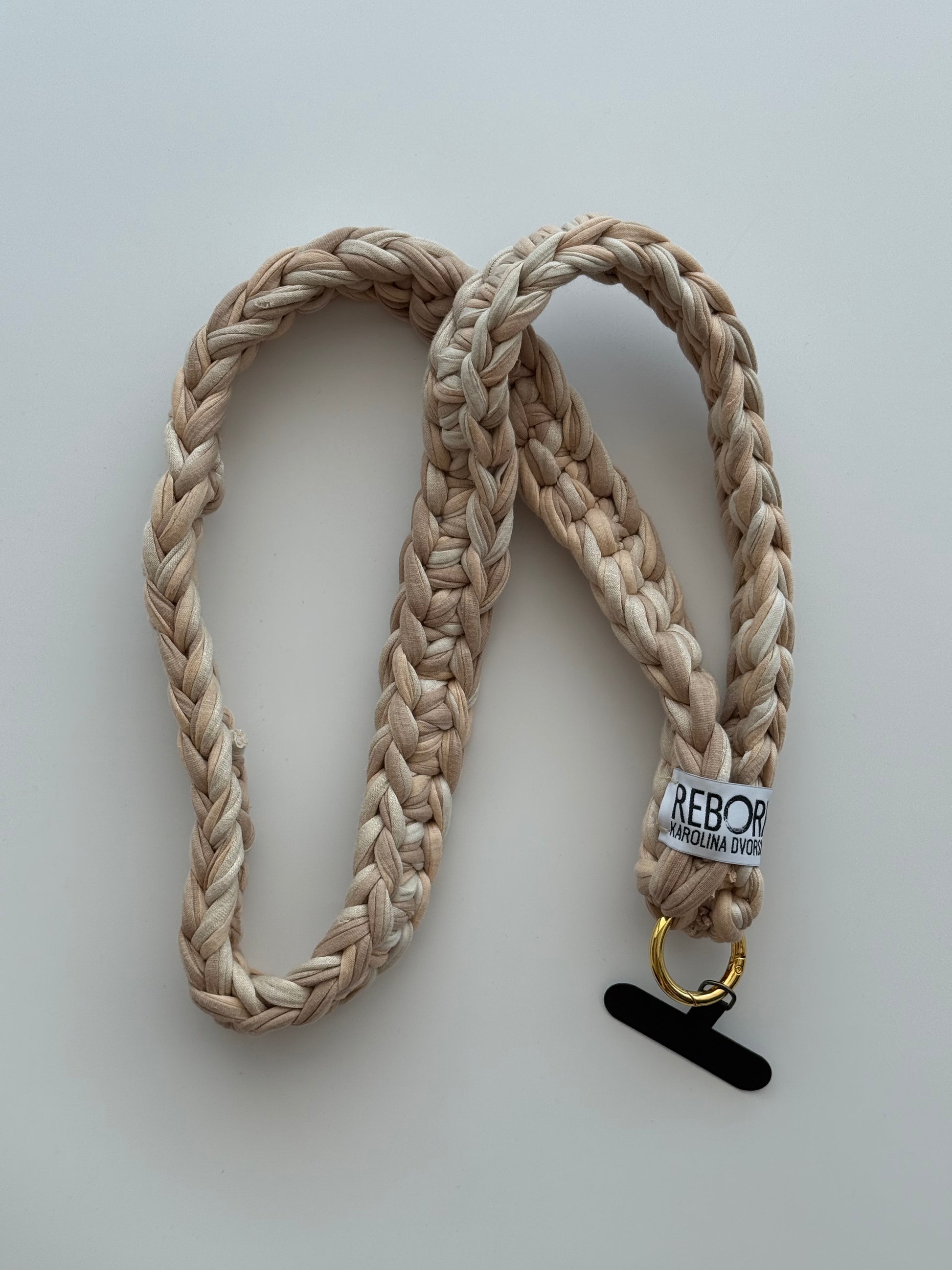 Crossbody popruh na telefon s vsadkou na úchyt do krytu. Popruh je lehce pružný.