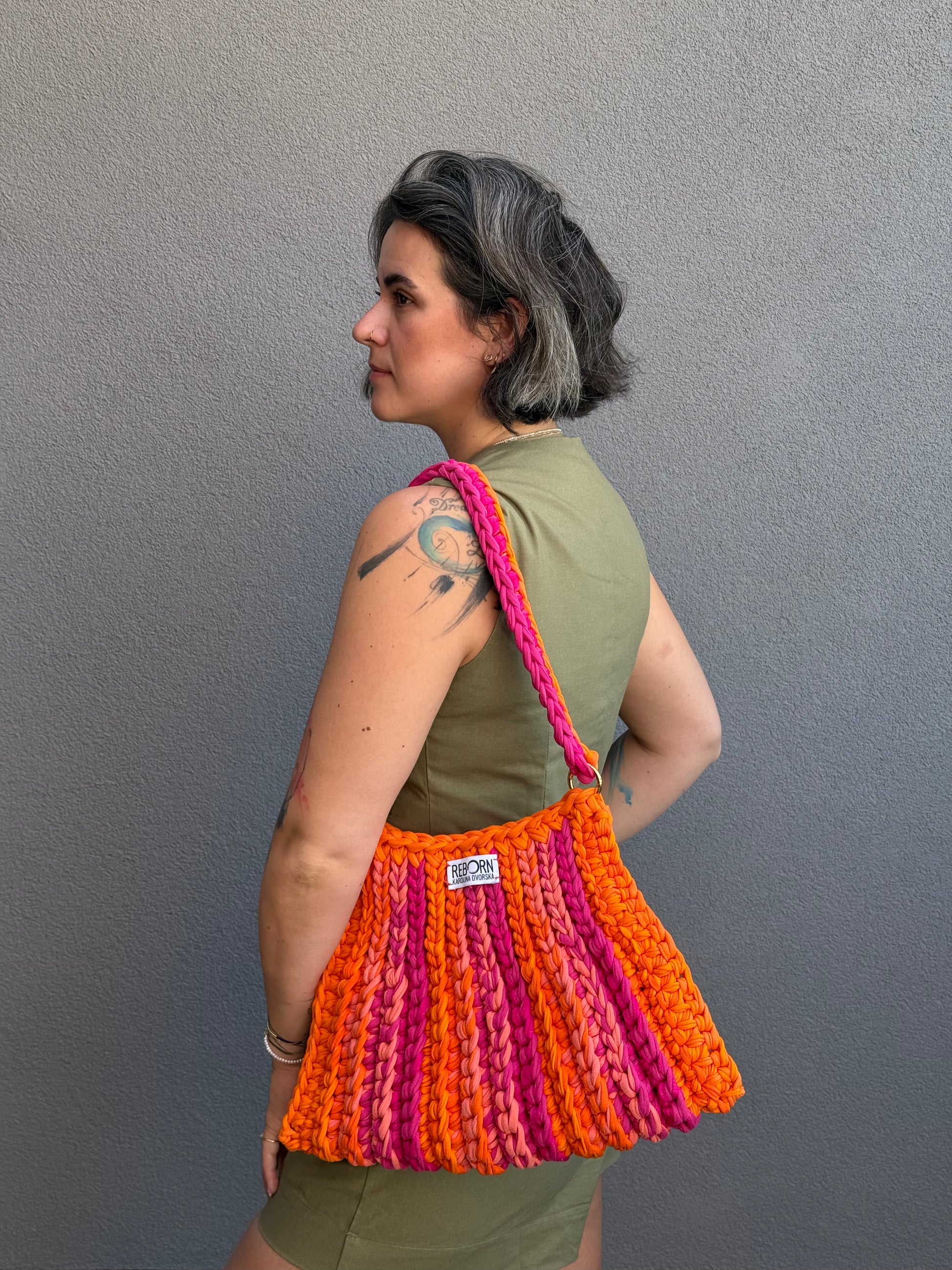 Ribbed Tote kabelka – Mango Raspberry