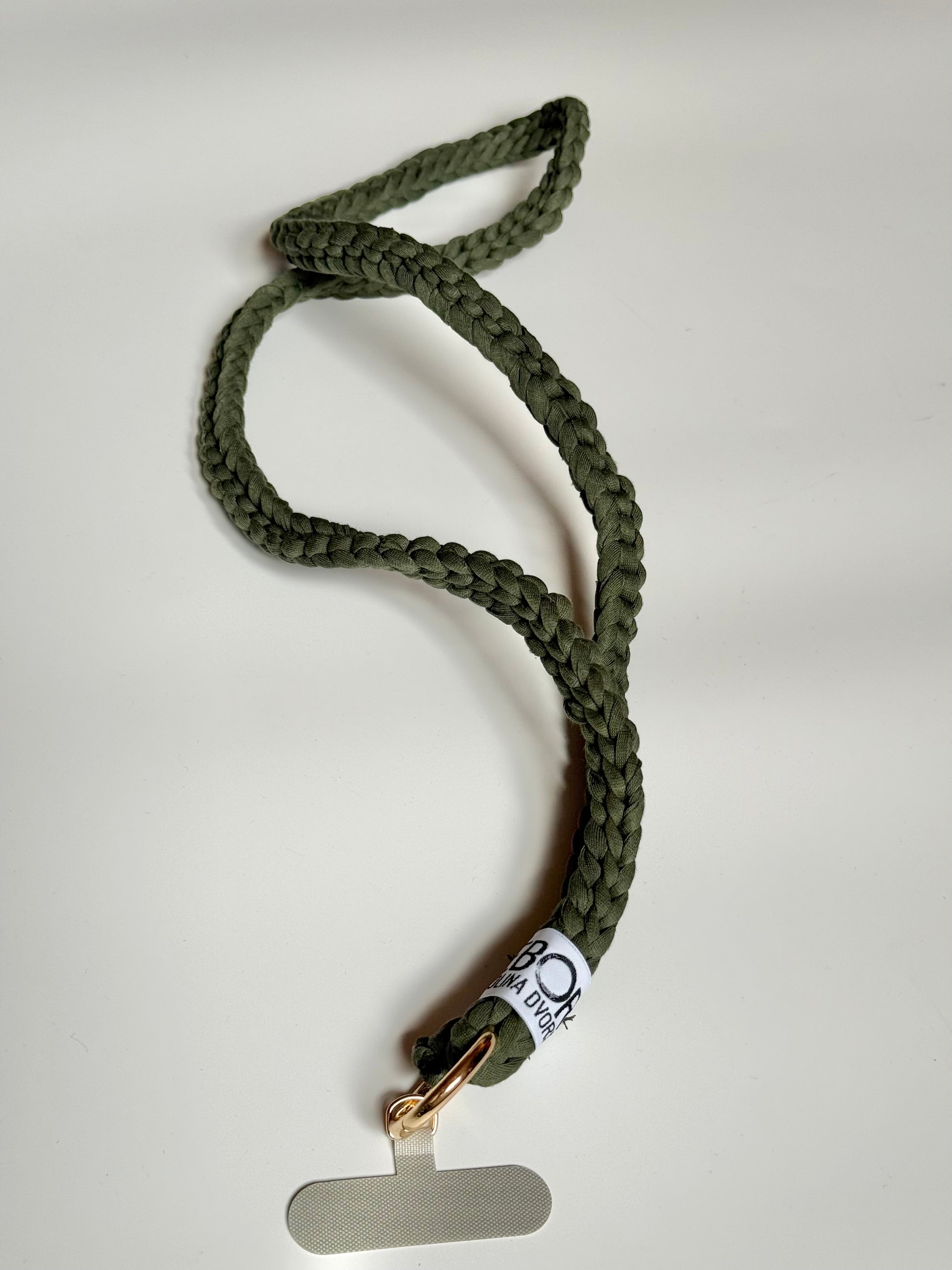 Crossbody popruh na telefon s vsadkou na úchyt do krytu. Popruh je lehce pružný.