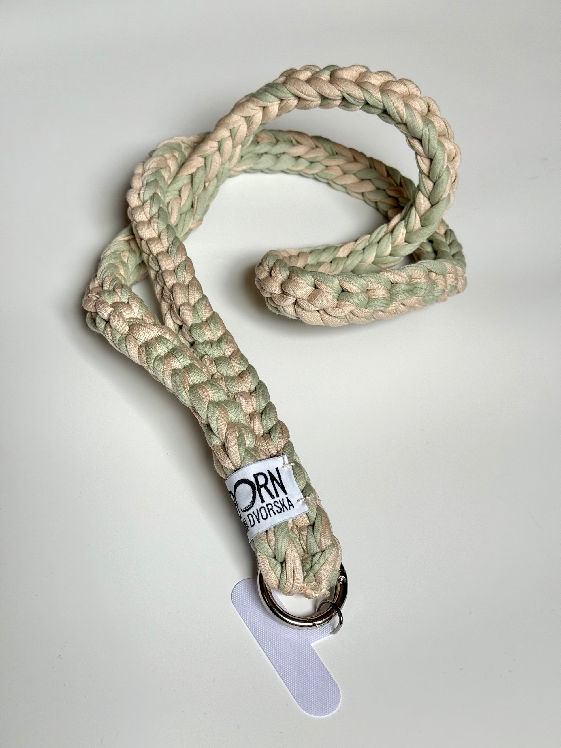 Crossbody popruh na telefon s vsadkou na úchyt do krytu. Popruh je lehce pružný.
